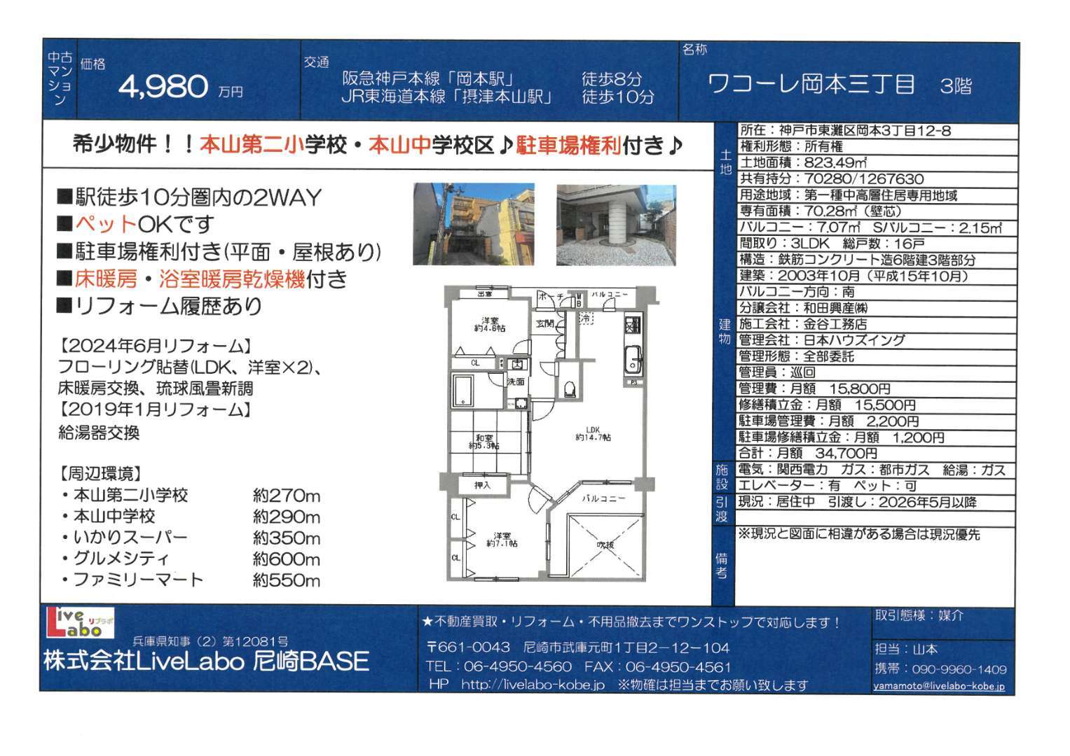 『神戸市東灘区 ワコーレ岡本三丁目』